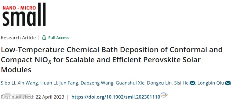 低温化学浴共形沉积NiOx用于可规模化高效率钙钛矿光伏组件