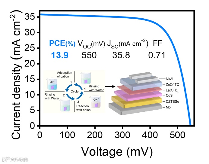 图1. 高效电池的J-V曲线和SILRA法沉积La(OH)x示意图。