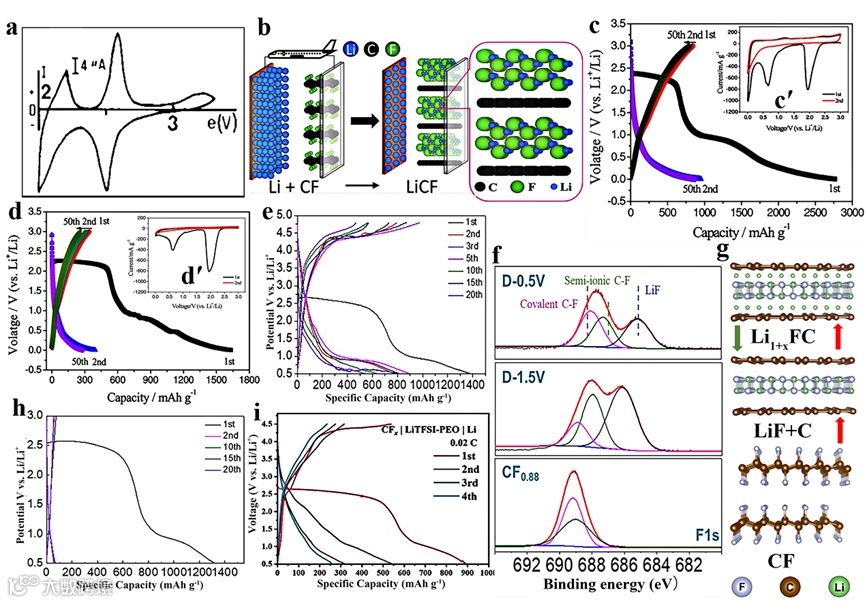 再次,针对氟化碳电池的电解液开发应该同步进行,尤其是具有氟化锂溶解,弱化C-F键和本身能提供容量的多功能电解液会极大的提高氟化碳电池的性能;