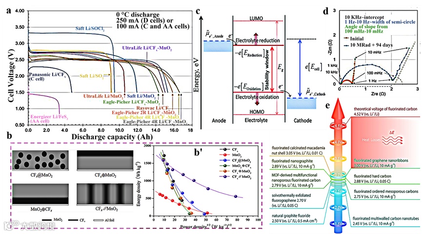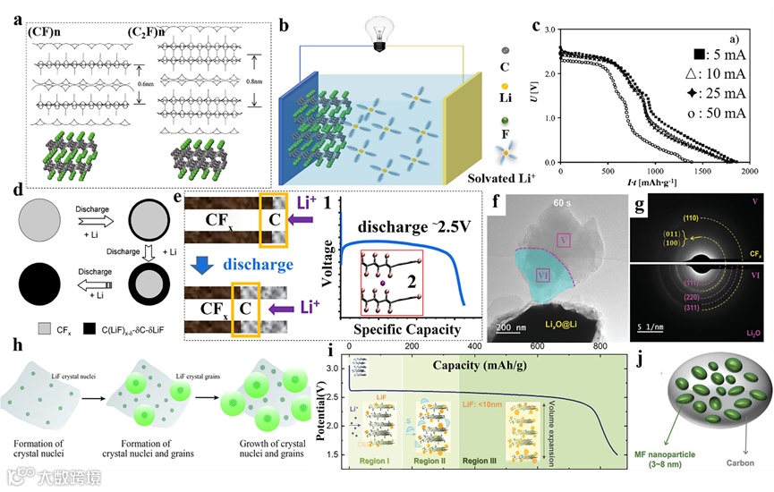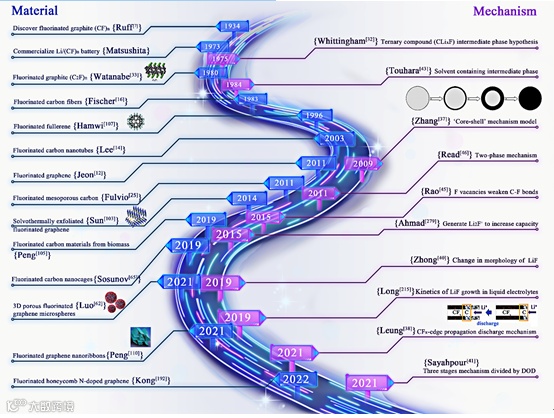 图1. 锂氟化碳电池反应机理和正极材料CFx的发展历史