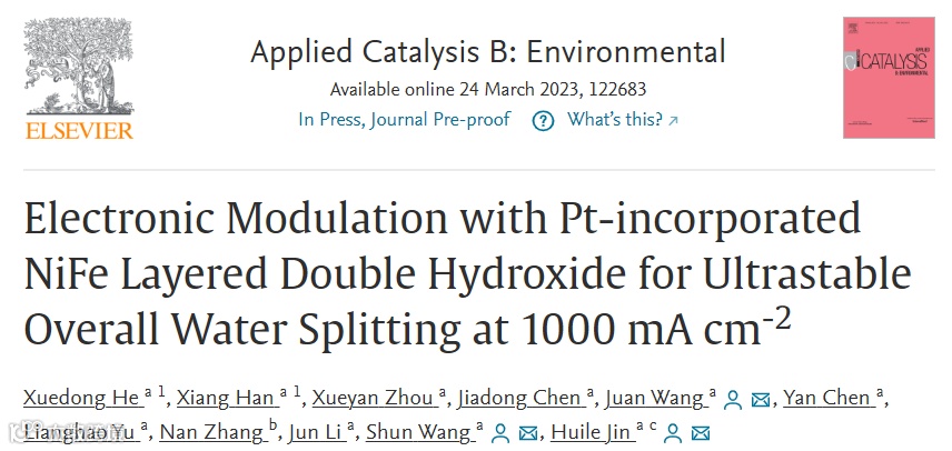 X. He, X. Han, X. Zhou, J. Chen, J. Wang*, Y. Chen, L. Yu, N. Zhang, J. Li, S. Wang*, and H. Jin* Appl. Catal. B 2023 DOI: 10.1016/j.apcatb.2023.122683