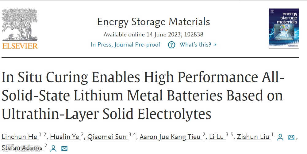 近日,来自西安交通大学的何霖春助理教授、刘子顺教授与新加坡国立大学的Stefan Adams教授合作,在国际知名期刊Energy Storage Materials上发表题为“In Situ Curing Enables High Performance All-Solid-State Lithium Metal Batteries Based on Ultrathin-Layer Solid Electrolytes” 的文章。该文章分析了复合固态电解质中离子传输路径受温度的影响,并采用原位固化超薄固态电解质制备出高性能固态电池。