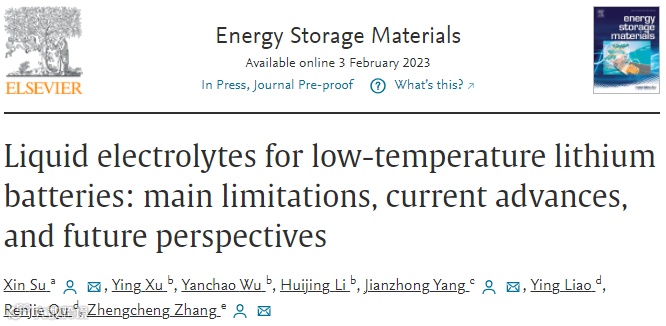 哈尔滨工业大学威海新能源学院苏新教授、美国阿贡国家实验室 Zhengcheng Zhang 和深圳澳睿Jianzhong Yang等人总结了锂离子低温电解质的研究现状,包括低温电解质的作用机理、研究进展以及未来的研究方向。本文系统地概述了LIBs低温电解质的最新研究,分析了性能局限性的三点主要原因(如溶剂粘度大和锂盐溶解度低、缓慢的电荷转移过程、锂枝晶的形成),总结了目前低温电解质的进展,包括锂盐、溶剂、添加剂和新策略(液化气体电解质、局部高浓度电解质)。
