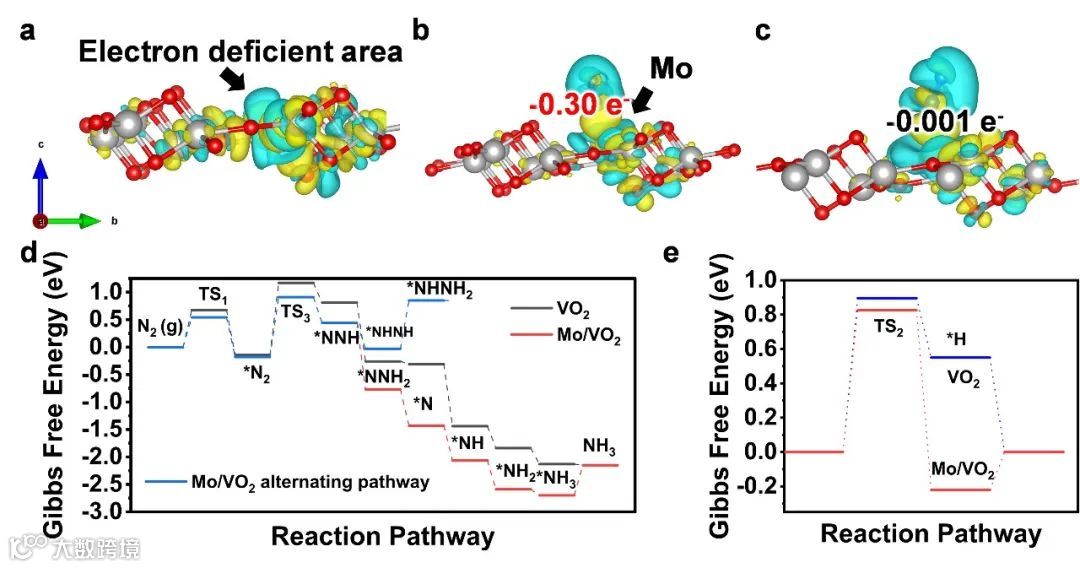 (1)通过DFT计算证明了在金属与载体之间的EMSI作用使得Mo出现电子缺陷区域(路易斯酸位点),可以更好的活化氮气分子。