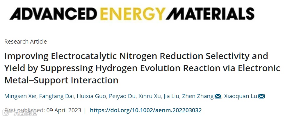 基于此,西北师范大学卢小泉教授团队在国际知名期刊Advanced Energy Materials上发表题为“Improving Electrocatalytic Nitrogen Reduction Selectivity and Yield by Suppressing Hydrogen Evolution Reaction via Electronic Metal-Support Interaction”的研究论文。