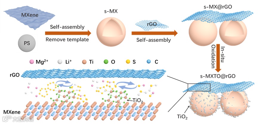 MXene@rGO复合导电框架中原位构建TiO2活性位点用作高性能镁/锂硫电池硫负载材料