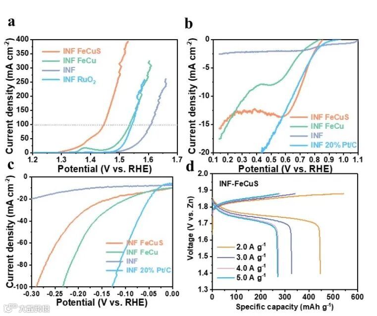要点二:INF-FeCuS催化剂具有优异的四功能电催化活性