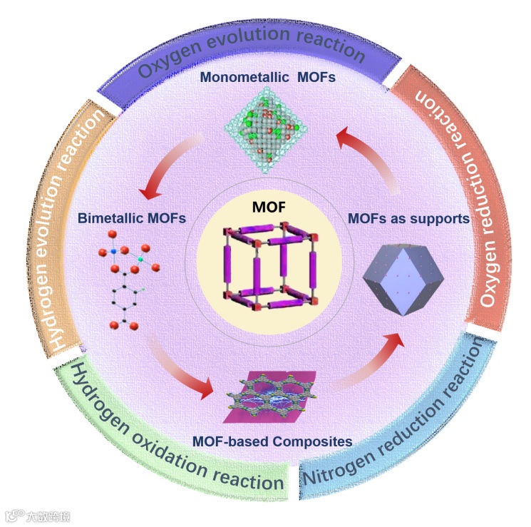 (1)将MOFs基电催化剂分为单金属MOFs、双金属MOFs、MOFs基复合材料和MOFs载体四类,系统归纳了其在析氢反应(HER)、氢氧化反应(HOR)、析氧反应(OER)、氧还原反应(ORR)和氮还原反应(NRR)等领域的应用进展。