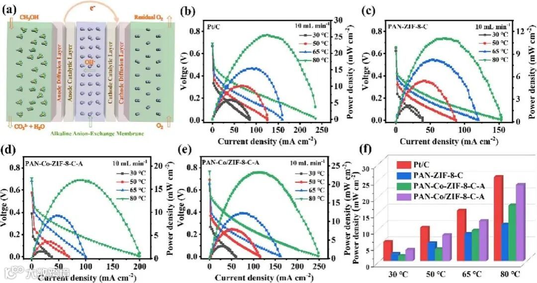 要点四:PAN-Co-ZIF-8-C-A和PAN-Co/ZIF-8-C-A修饰的燃料电池器件性能