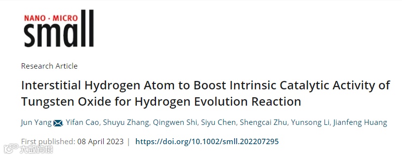 基于此,陕西科技大学材料学院杨军副教授在Small上发表题为“Interstitial Hydrogen Atom to Boost the Intrinsic Catalytic Activity of Tungsten Oxide for Hydrogen Evolution Reaction”的文章。该工作提出了一种新的间隙原子缺陷模型,通过优化表面氢吸附能来提高WO3的本征活性。当小尺寸氢原子进入WO3的间隙晶格位置时,间隙氢与晶格氧之间的强相互作用可以显著降低活性W中心d轨道的电子密度分布,从而减弱WO3对氢的吸附能,最终实现析氢性能提高。