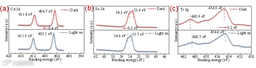 图3. Cd-MXene的Cd 3d(a)、Se 3d(b)和Ti 2p(c)的原位XPS图。