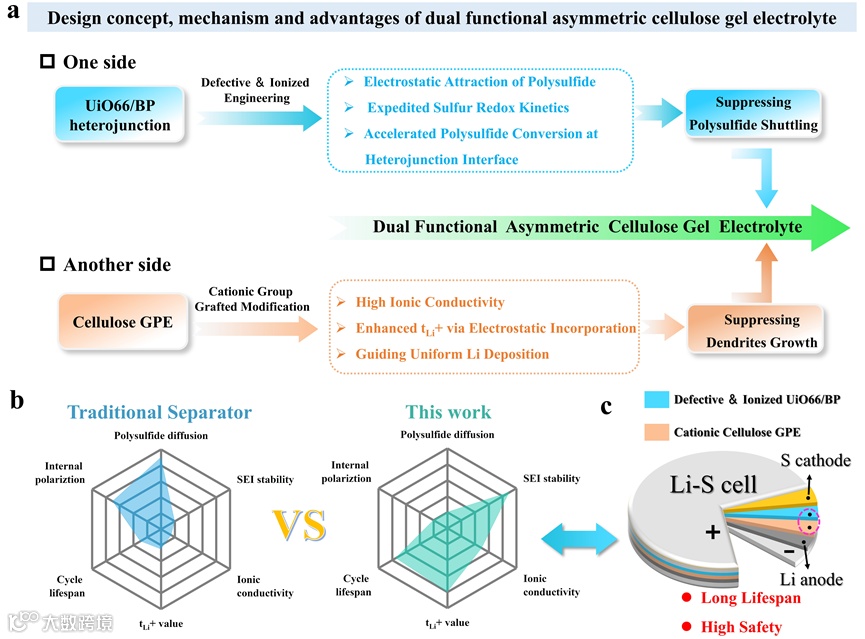 构建双功能非对称型纤维素凝胶电解质同时抑制穿梭效应和枝晶生长