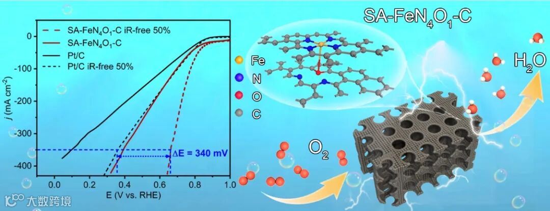 本工作中Fe单原子的构型通过同步辐射进行表征,确定其单原子构型为Fe-N4O1(图2)。
