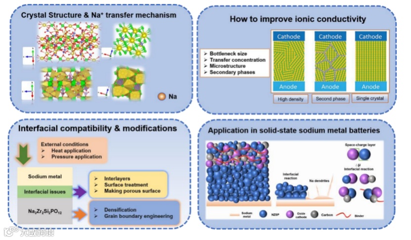 本文总结了Na3Zr2Si2PO12基陶瓷电解质的基本特点,如晶体结构铁电和钠离子传导机理,并详细讨论了提高离子电导率的方法: