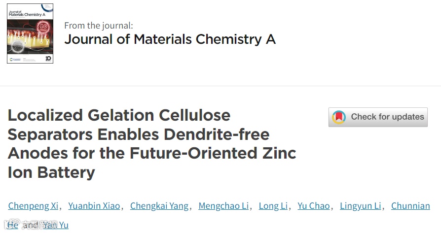 图1:局部凝胶化纤维素隔膜为锌离子电池提供无枝晶阳极