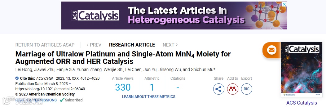 武汉理工大学木士春教授课题组在国际知名期刊ACS Catalysis上发表题为“Marriage of Ultralow Platinum and Single-Atom MnN4 Moiety for Augmented ORR and HER Catalysis”的研究论文。该研究提出了以MOF衍生的Mn-N-C框架作为基底,将高本征活性的Pt物种引入到单原子Mn-N-C体系中,期望在保持基底良好稳定性的同时,提高催化剂的整体催化活性。