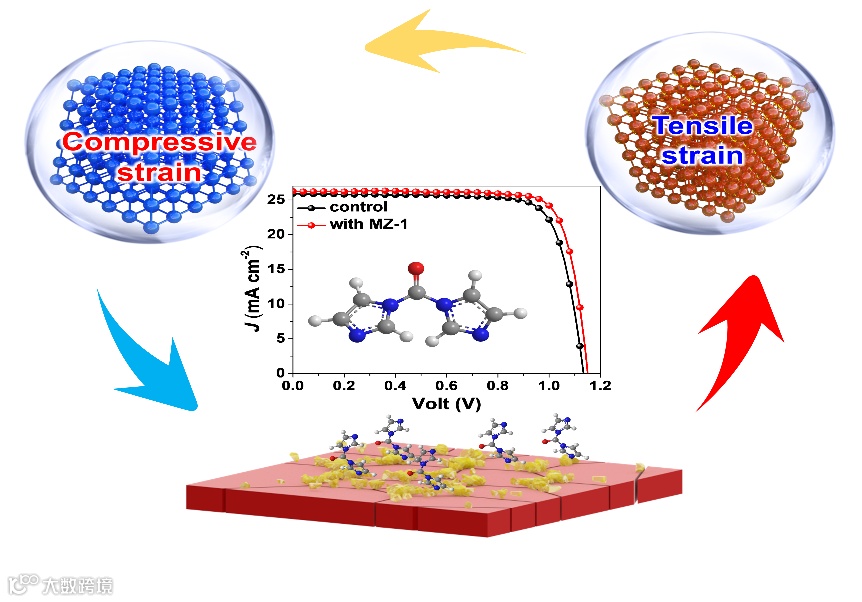 随着近几年的发展,钙钛矿太阳电池 (PSC) 已在效率和成本方面可以与大多数商业光伏电池相媲美,而其内在的不稳定性仍然是实际应用的主要问题。在PSC器件制备和运行过程中,PSC中存在的不良应变是指化学键的延伸/变窄和晶格体积的膨胀/收缩。由于应变会促进钙钛矿的相变、化学分解和机械脆性,这在很大程度上影响了PSC器件的稳定性。最近的研究表明,应变工程制备高效稳定的 PSC 的目的应该是集中释放残余拉伸应变和引入压缩应变。然而,拉应力向压应力的转变仍然是一个挑战。到目前为止,很少开发通过晶体生长调节实现从拉伸到压缩的应变转变的成分工程策略。
