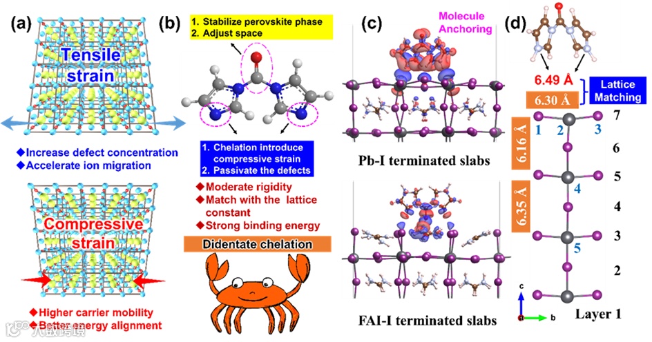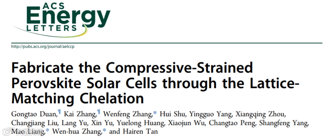 基于此,来自西南石油大学的章文峰副研究员,与天津理工大学梁茂教授和云南大学张文华教授合作,在国际知名期刊ACS Energy Letters上发表题为“Fabricate the Compressive-Strained Perovskite Solar Cells through the Lattice Matching Chelation”的研究文章。该文章提出了一种晶格匹配螯合策略来解决钙钛矿薄膜固有的不稳定性问题。
