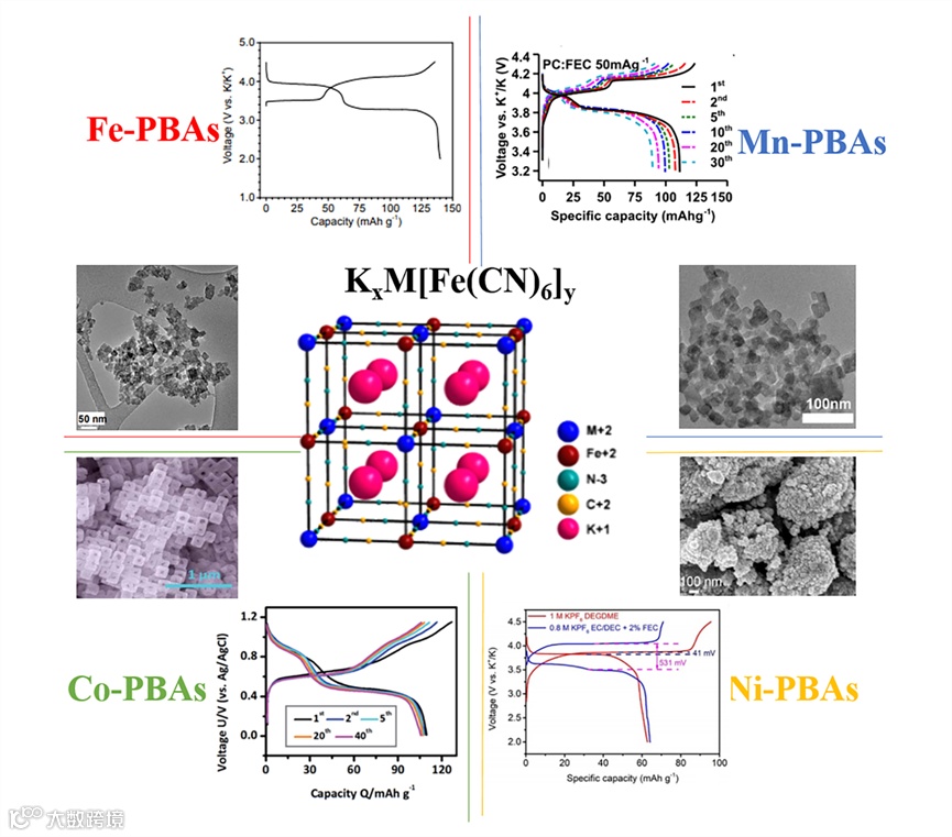 本文从氧化还原活性过渡金属(铁、锰、钴、镍等)的角度,介绍了已报道的普鲁士蓝类似物的发展状况和电化学性质,并总结了它们在容量、循环寿命、电压平台、成本等方面的优缺点。最后,针对具有不同氧化还原活性的过渡金属的普鲁士蓝类似物,为钾离子电池商业应用普鲁士蓝类似物的未来发展提出了一些改进策略和具体方法。