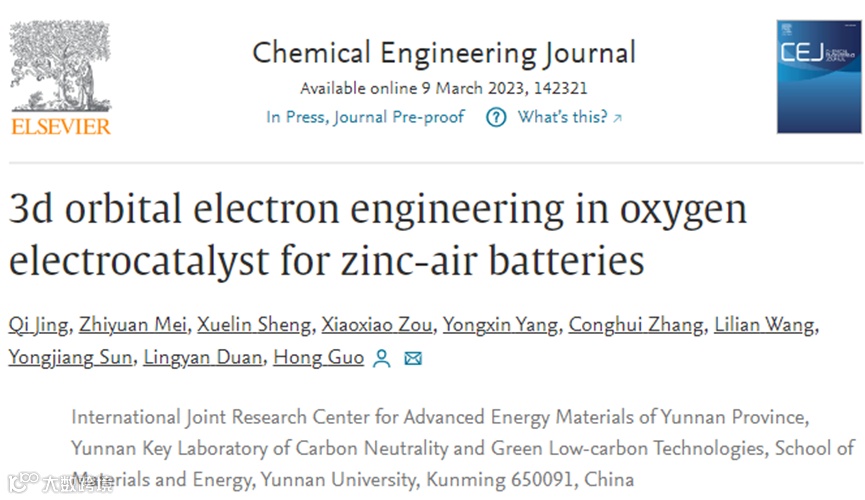 基于此,云南大学郭洪教授,在国际知名期刊 Chemical Engineering Journal 上发表题为“3d orbital electron engineering in oxygen electrocatalyst for zinc-air batteries”的研究论文。
