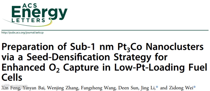 基于此,来自重庆大学的魏子栋教授和李静教授,在国际知名期刊ACS Energy Letters上发表题为“Preparation of Sub-1 nm Pt3Co Nanoclusters via a Seed-Densification Strategy for Enhanced O2 Capture in Low-Pt-Loading Fuel Cells”的文章。该文章报道了一种种子致密化方法,制备高度单分散的sub-1 nmPt3Co合金纳米晶。