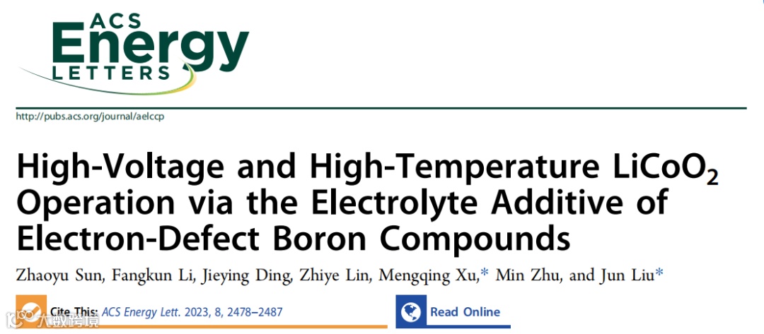 近日,来自华南理工大学的刘军教授和华南师范大学的许梦清研究员,在国际知名期刊ACS Energy Letters上发表题为“High-Voltage and High-Temperature LiCoO2 Operation via the Electrolyte Additive of Electron-Defect Boron Compounds”的文章。