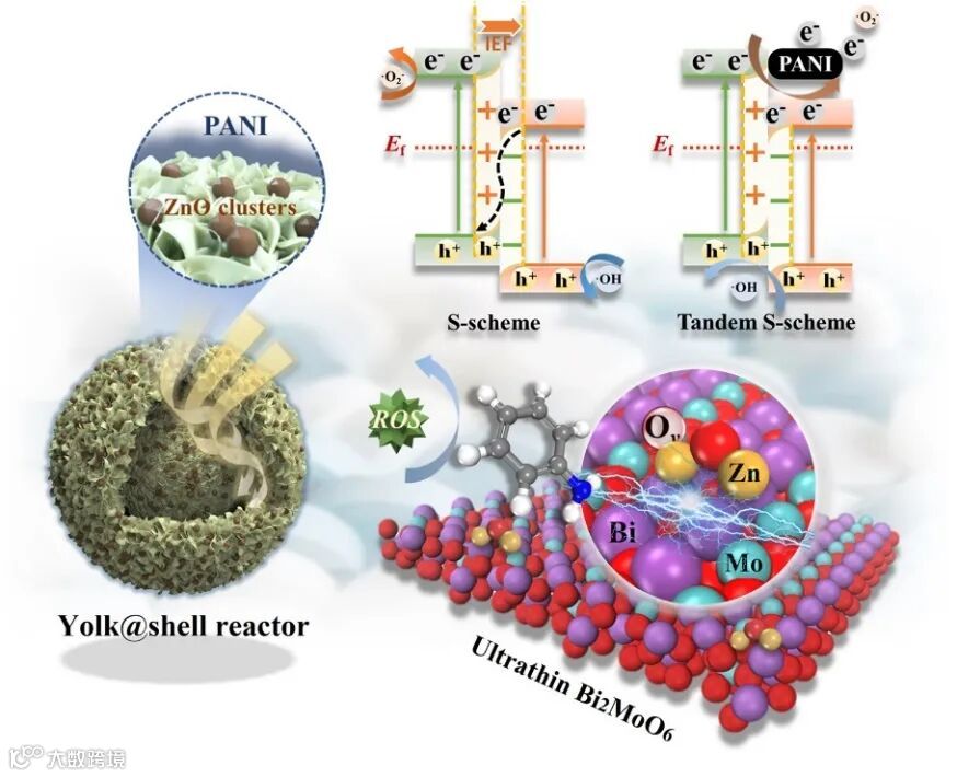 MOF衍生ZnO簇/超薄Bi2MoO6 yolk@shell反应器:通过PANI串联S型异质结建立高速载流子转移通道