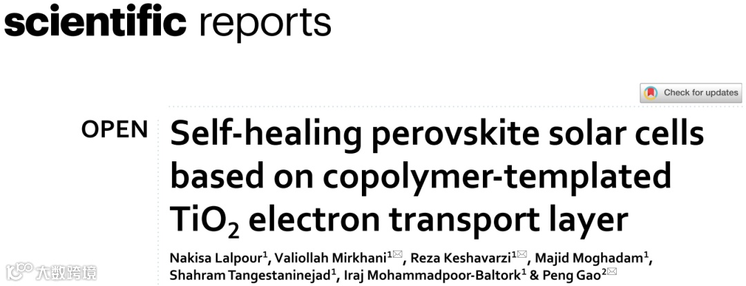 近日,来自伊朗伊斯法罕大学的Keshavarzi教授与中科院福建物质结构研究所的Peng Gao研究员合作,在国际知名期刊Scientific Reports上发表题为“Self-healing perovskite solar cells based on copolymer-templated TiO2 electron transport layer”的文章。