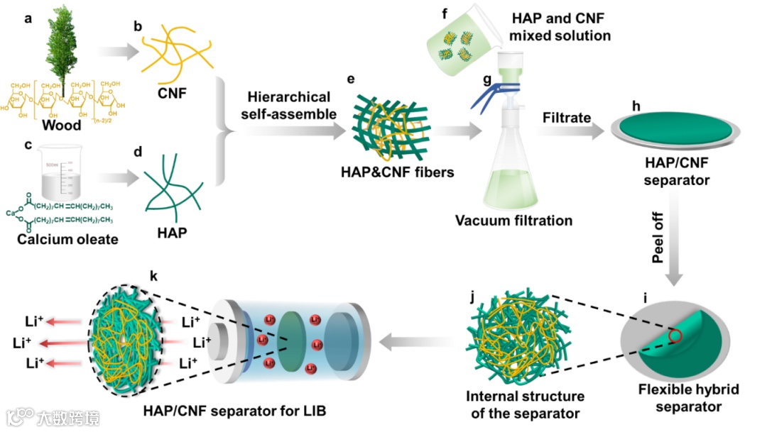 图2 HAP/CNF复合隔膜的制备及其在锂离子电池中的应用