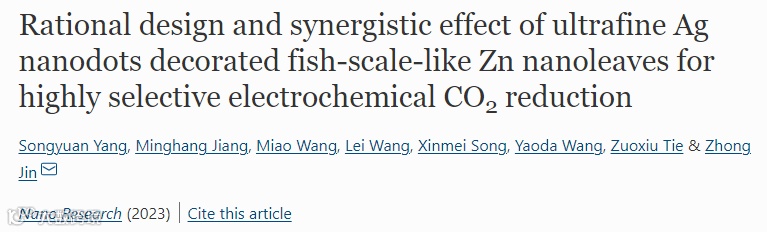 南京大学金钟课题组在国际纳米领域知名期刊Nano research上发表题为“Rational design and synergistic effect of ultrafine Ag nanodots decorated fish-scale-like Zn nanoleaves for highly selective electrochemical CO2 reduction”的研究论文。