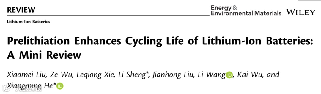 [8] Zhan R, Wang X, Chen Z, et al. Promises and Challenges of the Practical Implementation of Prelithiation in Lithium-Ion Batteries[J]. Advanced Energy Materials. 2021, 11:2170138.