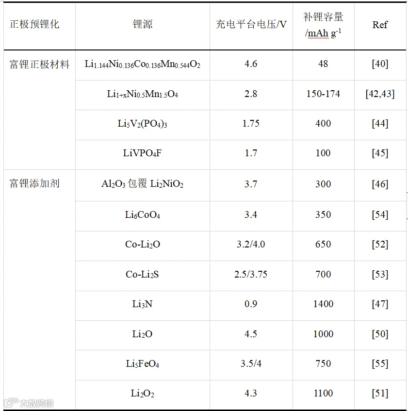 表1. 正极预锂化材料