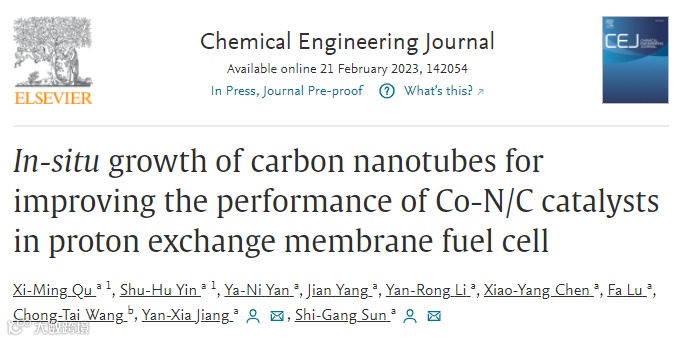 基于此,厦门大学孙世刚教授、姜艳霞教授在国际知名期刊Chemical Engineering Journal上发表题为“In-situ growth of carbon nanotubes for improving the performance of Co-N/C catalysts in proton exchange membrane fuel cell”的研究文章。