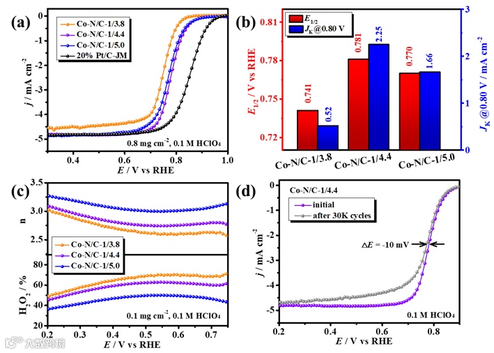 要点三:Co-N/C-1:4.4催化剂氧还原性能
