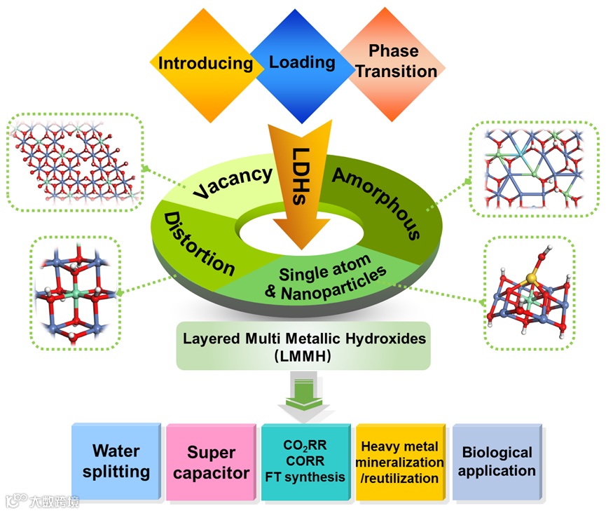 作者并指出,在传统LDH中“D”是“double“,顾名思义为两种金属的意义;在现今多金属组成的LDH中,D似乎不能严谨的表示其准确的意义,作者提出 layered multi-metallic hydroxide (LMMH)可以更严谨表达LDH材料的发展。