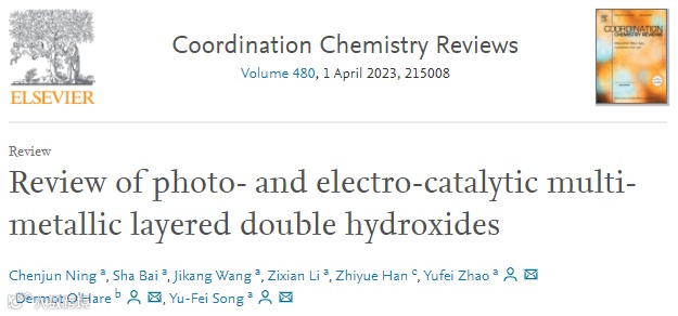 基于此,来自北京化工大学的赵宇飞教授、宋宇飞教授联合牛津大学Dermot O’Hare教授等团队,在国际知名期刊Coordination Chemistry Reviews上发表题为“Review of photo- and electro-catalytic multi-metallic layered double hydroxides”的综述文章。