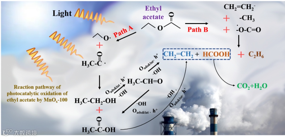 Scheme 1. Possible reaction pathways of light-driven photothermal ethyl acetate oxidation over MnOx-100.