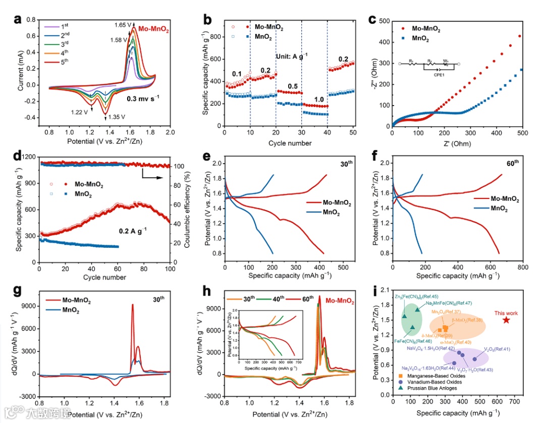 Mo离子掺杂用于促进两电子转移的高性能水系锌锰电池