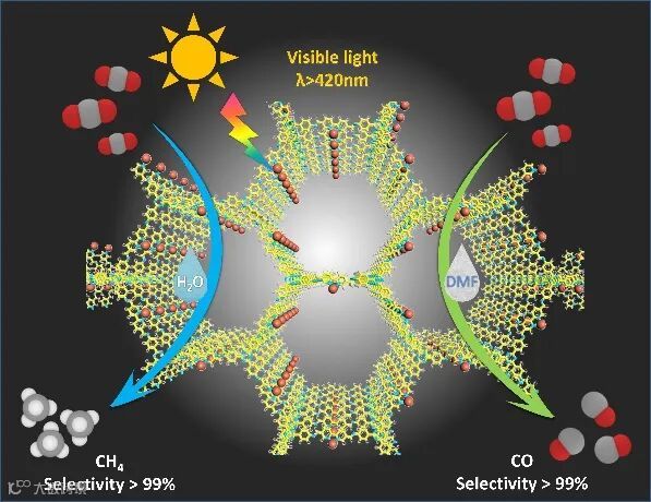 要点二:光催化CO2还原通过改变反应介质可以选择性地生成CO和CH4且选择性接近100%