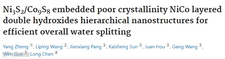 Yang Zheng, Liping Wang, Jianxiang Pang, Kaisheng Sun, Juan Hou, Gang Wang, Wen Guo, Long Chen, Ni3S2/Co9S8 embedded poor crystallinity NiCo layered double