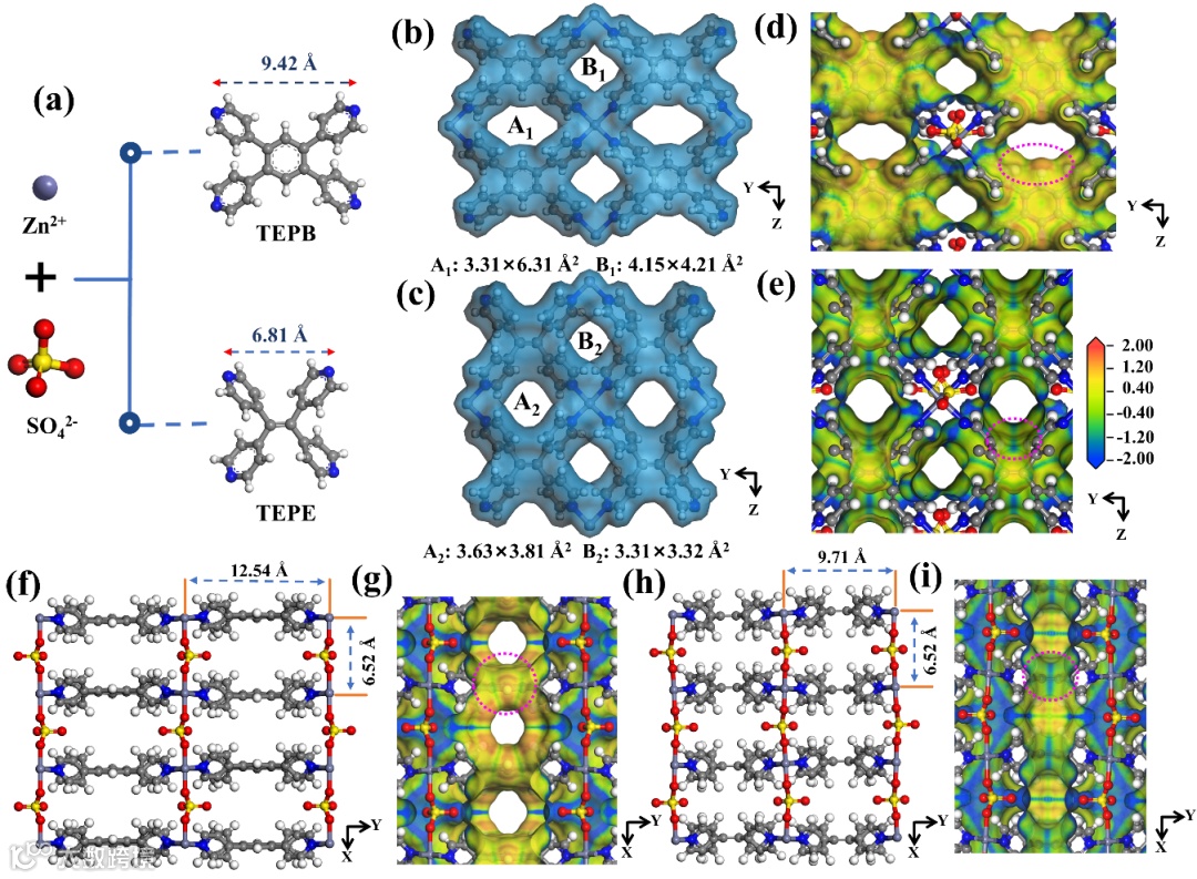 图1. SOFOUR-1-Zn与SOFOUR-TEPE-Zn的结构及孔径尺寸和孔道环境示意图。