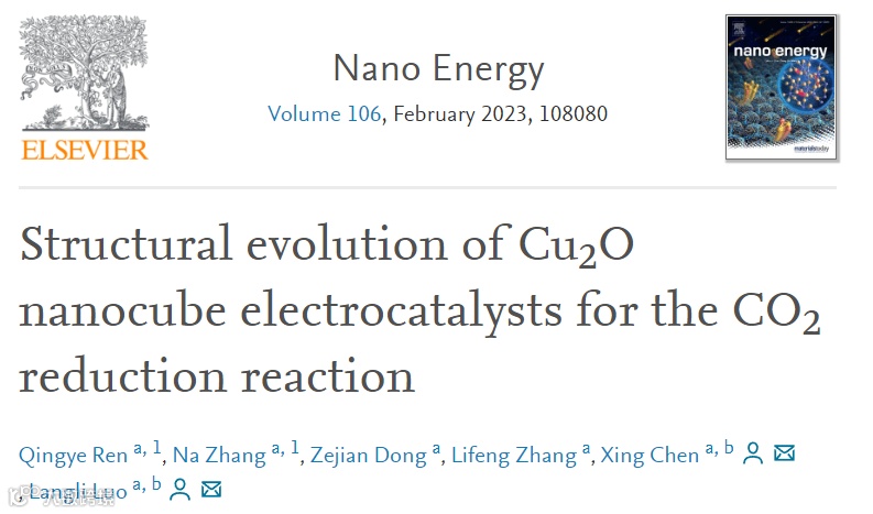 基于此,来自天津大学的罗浪里教授和陈星教授合作,在国际知名期刊Nano Energy上发表题为“Structural evolution of Cu2O nanocube electrocatalysts for the CO2 reduction reaction”的文章。