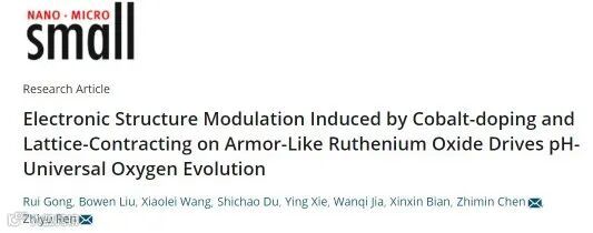 基于此,黑龙江大学的任志宇教授和陈志敏教授合作,在国际知名期刊Small上发表题为“Electronic Structure Modulation Induced by Cobalt-doping and Lattice Contracting on Armor-Like Ruthenium Oxide Drives pH-Universal Oxygen Evolution”的论文。
