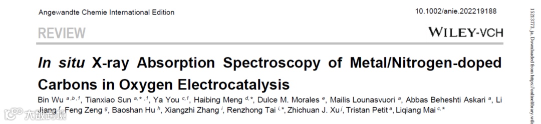 Angew封面综述:氧电催化中金属/氮掺杂碳的原位X 射线吸收光谱