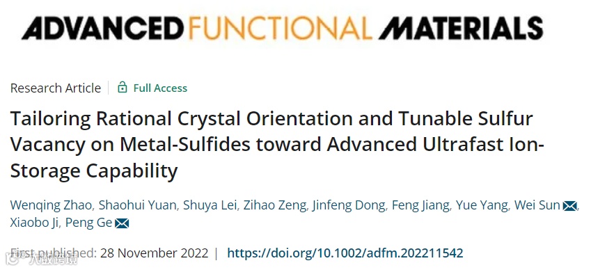 基于此,中南大学孙伟教授&葛鹏副教授在Advanced Functional Materials (影响因子:19.924)上发表题为“Tailoring Rational Crystal Orientation and Tunable Sulfur Vacancy on Metal-Sulfides toward Advanced Ultrafast