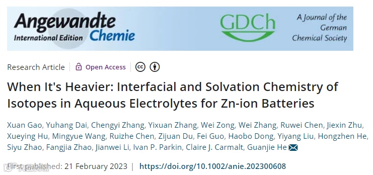 关键字:锌离子电池,同位素效应,界面化学