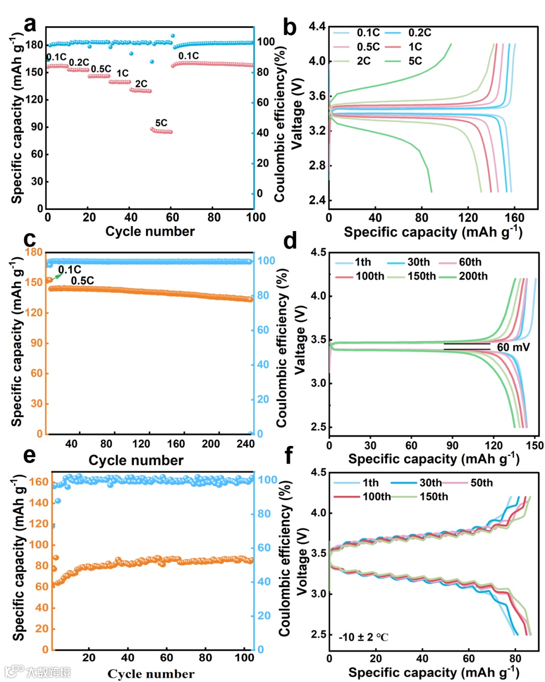 图6. LCPE-60电解质在室温和低温下的全电池性能