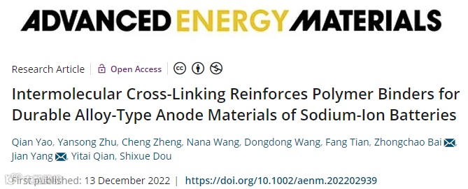 分子间交联增强聚合物粘结剂用于钠离子电池耐久型合金类负极