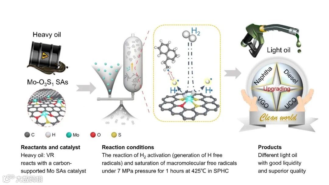 碳载单原子钼催化剂用于重油浆态床加氢反应示意图