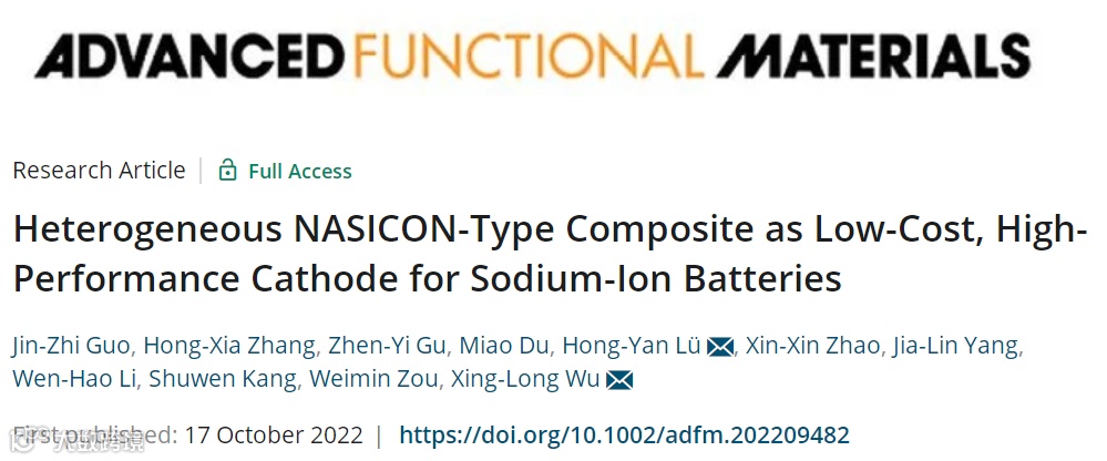 基于此,东北师范大学吴兴隆课题组,在国际知名期刊Advanced Functional Materials上发表题为“Heterogeneous NASICON-type composite as low-cost, high-performance cathode for sodium-ion batteries”的研究性文章。